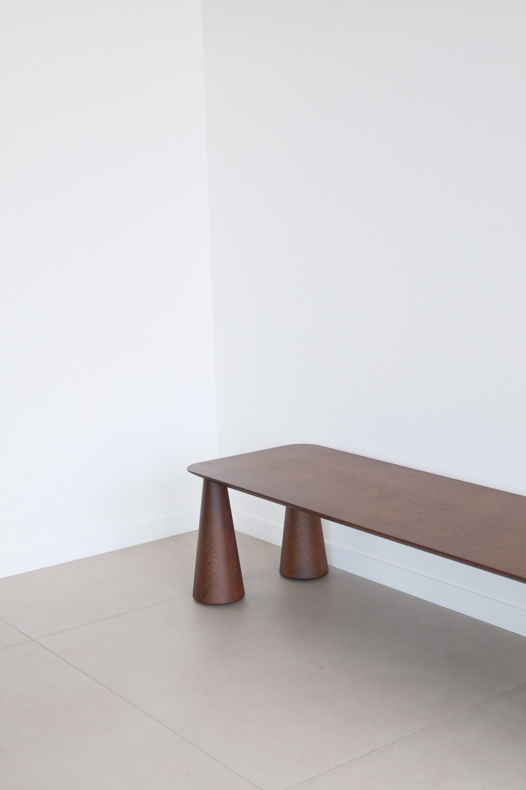 Table extérieure sur-mesure réalisée en Iroko d'Afrique Central et PVC expansé