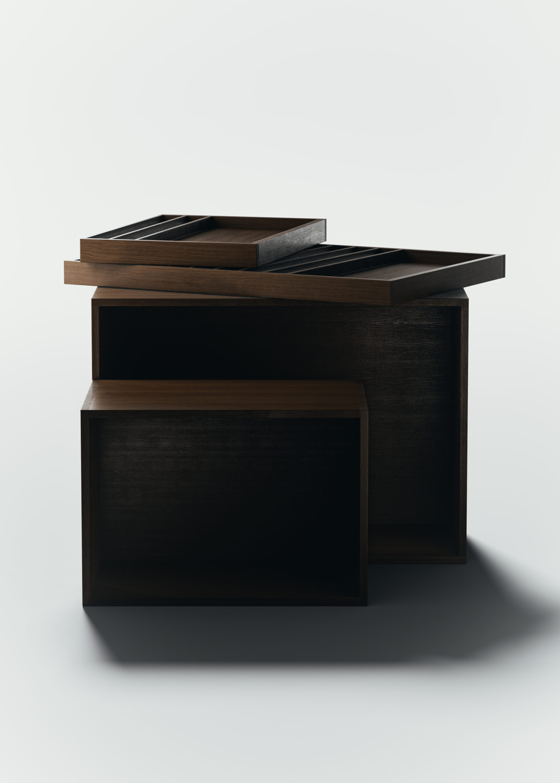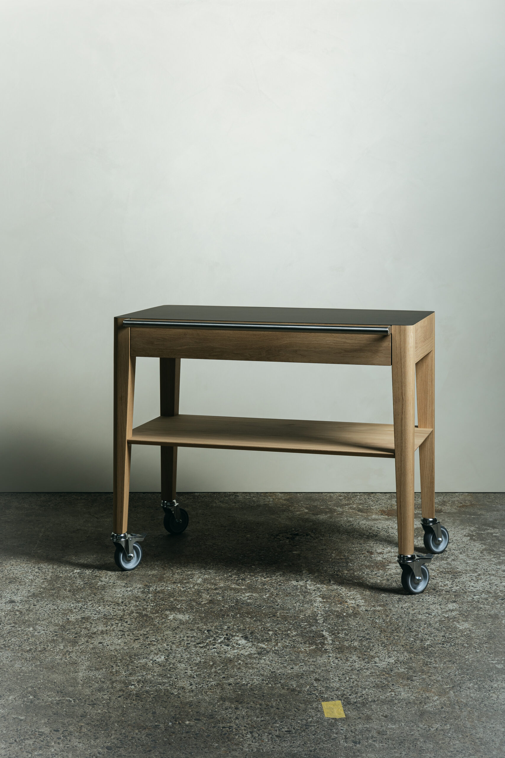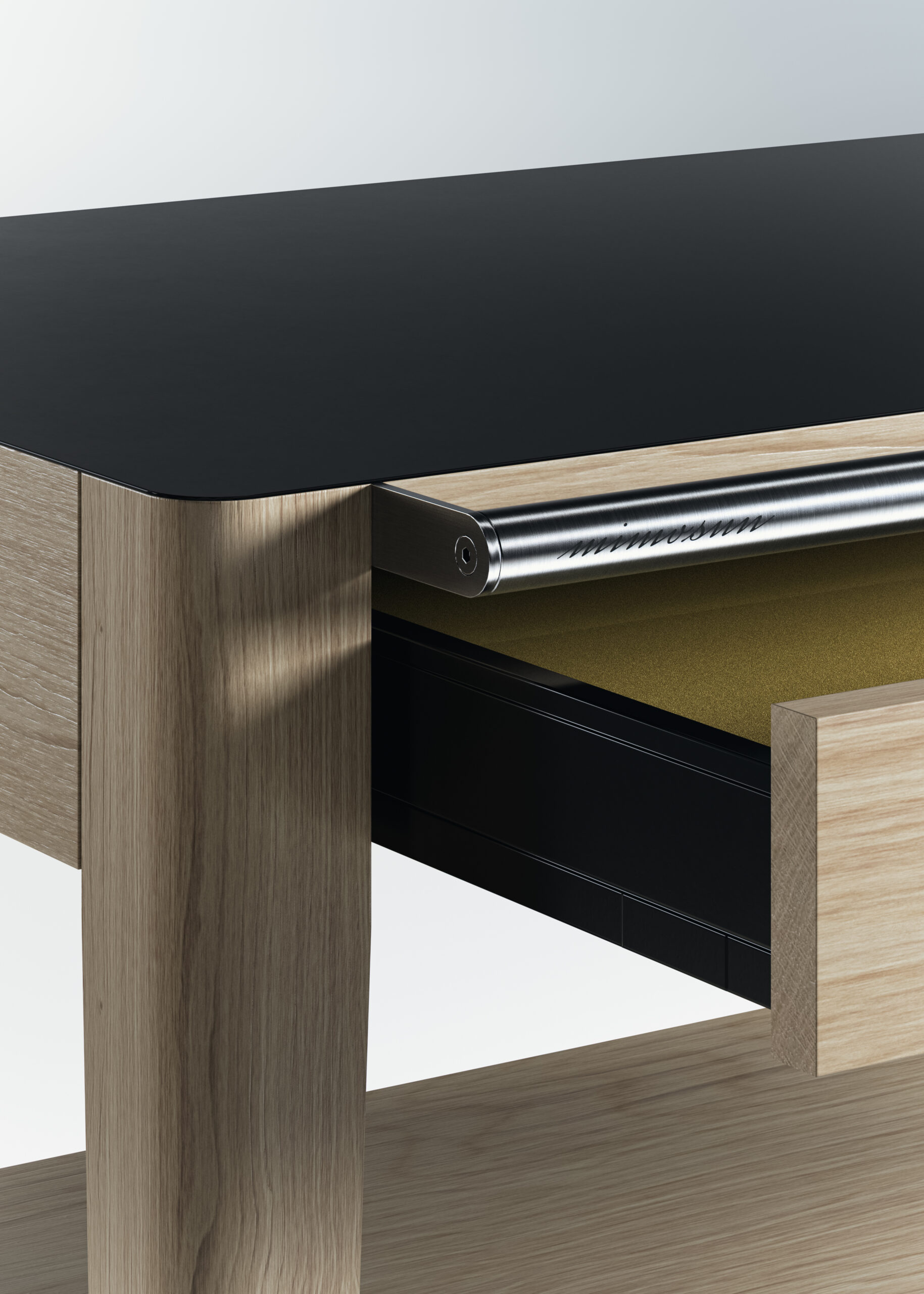 Lampe à poser réalisée en Chêne de Bourgogne, médium laqué, inoxydable et LED