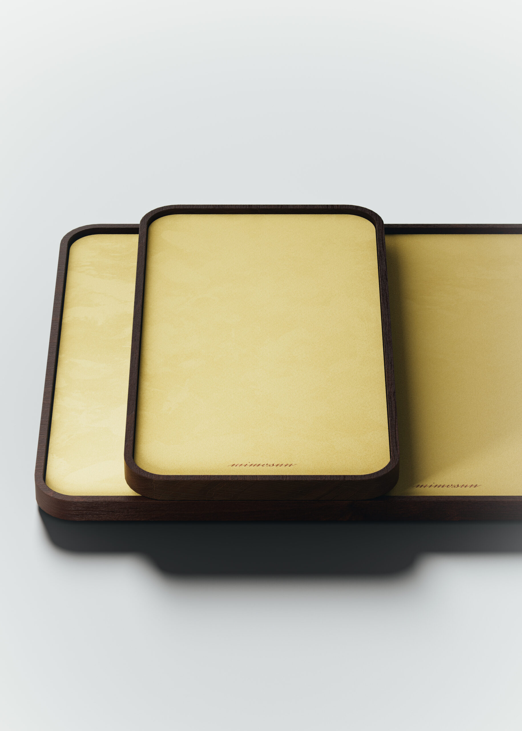 Plateau à fromages réalisé en Corian et poignée thermolaquée