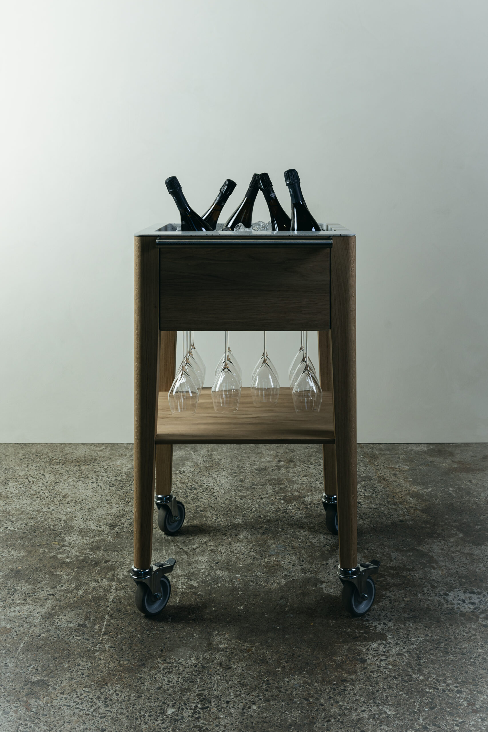 Plateau à fromages sur-mesure réalisé en Chêne de Bourgogne, Corian et poignée thermolaquée pour les restaurants L'ENTRECÔTE