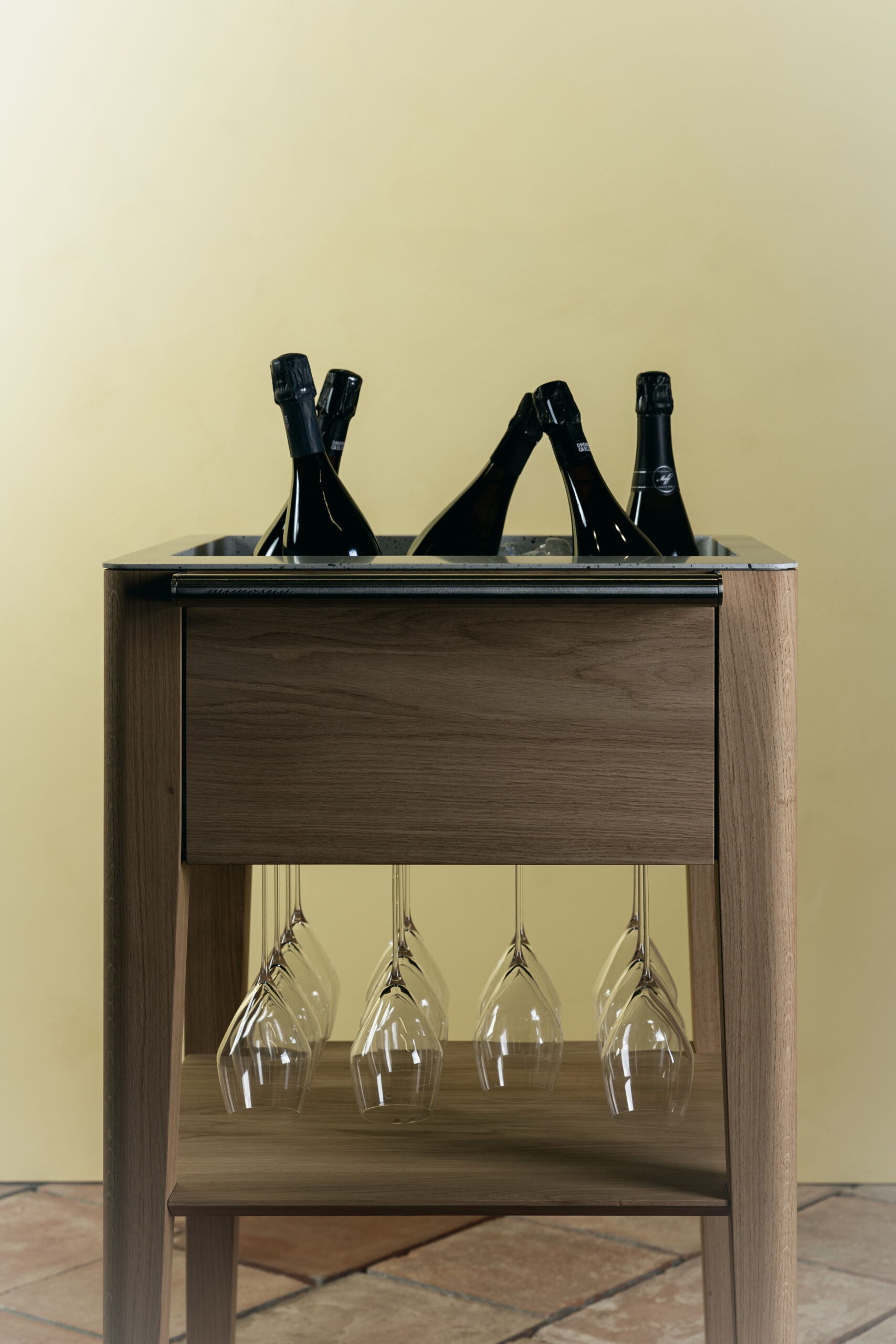 Mobiliers et banquettes sur-mesure réalisés en contreplaqué.